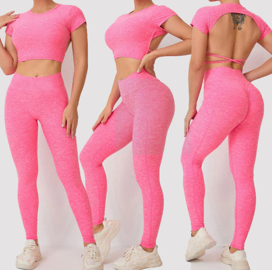 BBL 3 Piece (bra+open back top+Leggings)